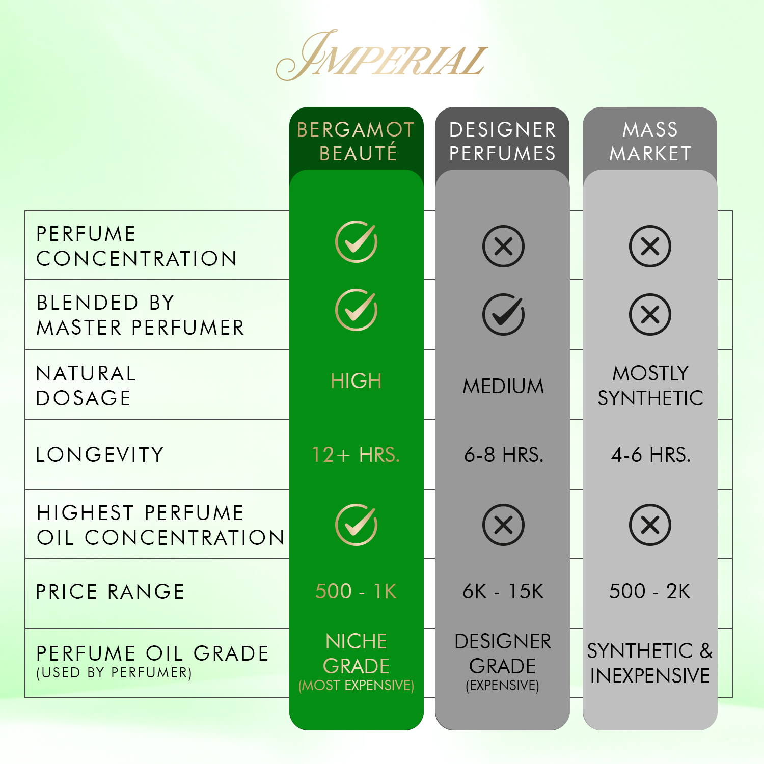Pure Parfums, also known as Parfum or Extrait de Parfum, contains a higher concentration of perfume oils compared to other types of fragrances, such as Eau de Parfum or Eau de Toilette. Pure Parfums are more intense and longer-lasting, with a richer and more complex scent profile. They are typically more expensive than other types of fragrances due to their high concentration of perfume oils. We at Bergamot Beauté are the pioneers in bringing Parfums Parfums to the Indian market for the first time ever, at an affordable price!