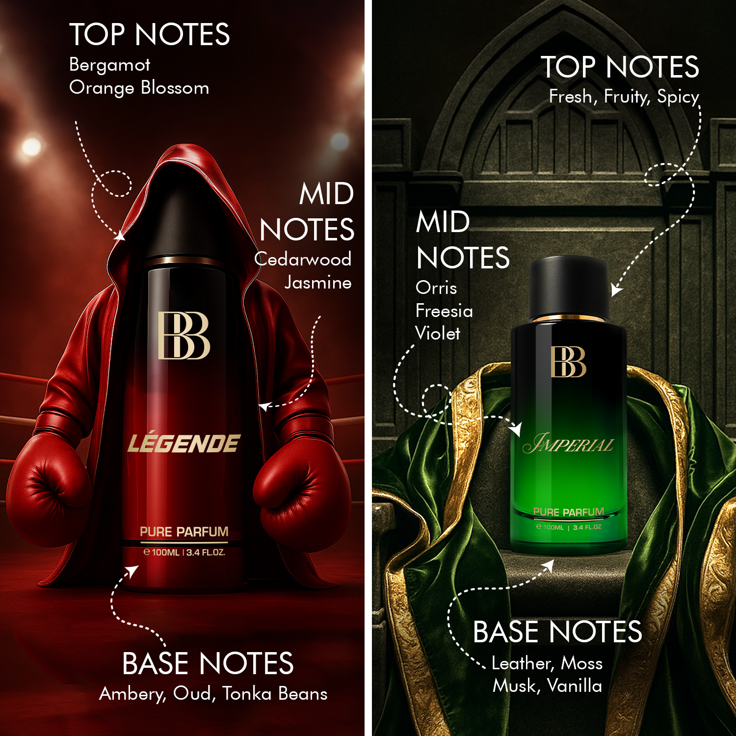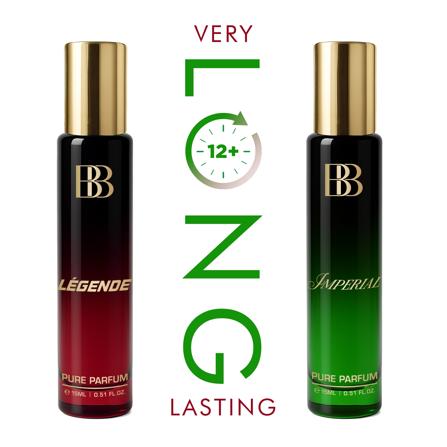 Introducing the exquisite Luxury Duo Gift Set for Men, featuring two premium perfumes for men: Imperial and Legende. Crafted as Pure Parfums, both fragrances contain one of the highest concentrations of perfume oil, offering an intense, long-lasting perfume experience that stays for over 12+ hours.Imperial is a bold and powerful fragrance that radiates confidence and sophistication, making it ideal for evening wear and special occasions. Légende, on the other hand, is a refined and timeless scent, perfect for daily wear, striking the perfect balance between freshness and elegance.Encased in a beautifully designed, high-end gift box, this luxury perfume set for men is a true symbol of masculine elegance and style. Whether you’re choosing a thoughtful gift or a signature long lasting men’s perfume for yourself, this duo is the ultimate choice for those who value premium fragrances and timeless class.