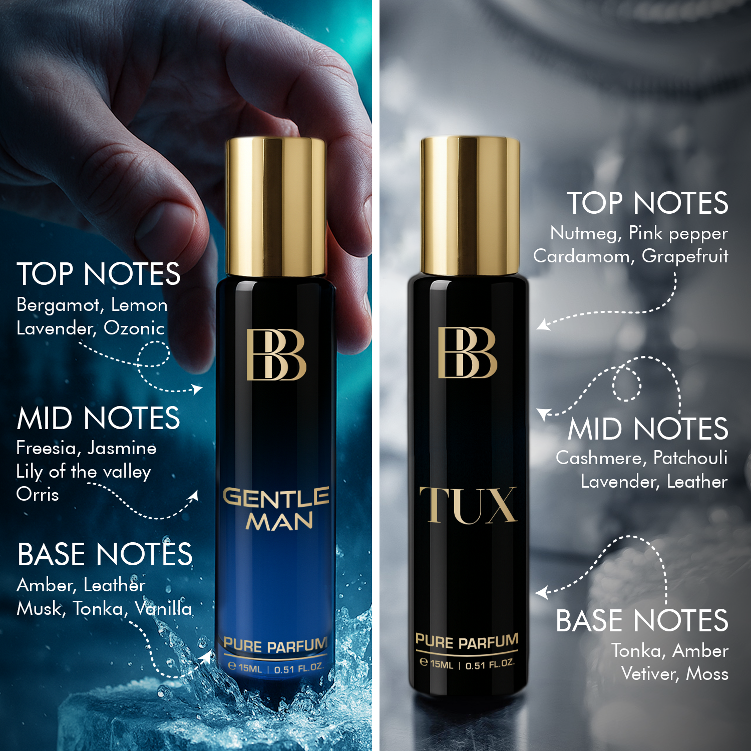Introducing the exquisite Luxury Duo Gift Set for Men, featuring two premium perfumes for men. Tux and Gentle Man. Crafted as Pure Parfums, both fragrances offer one of the highest concentrations of perfume oil, delivering an intense, long-lasting perfume experience that stays for over 12+ hours. Tux is a bold,...