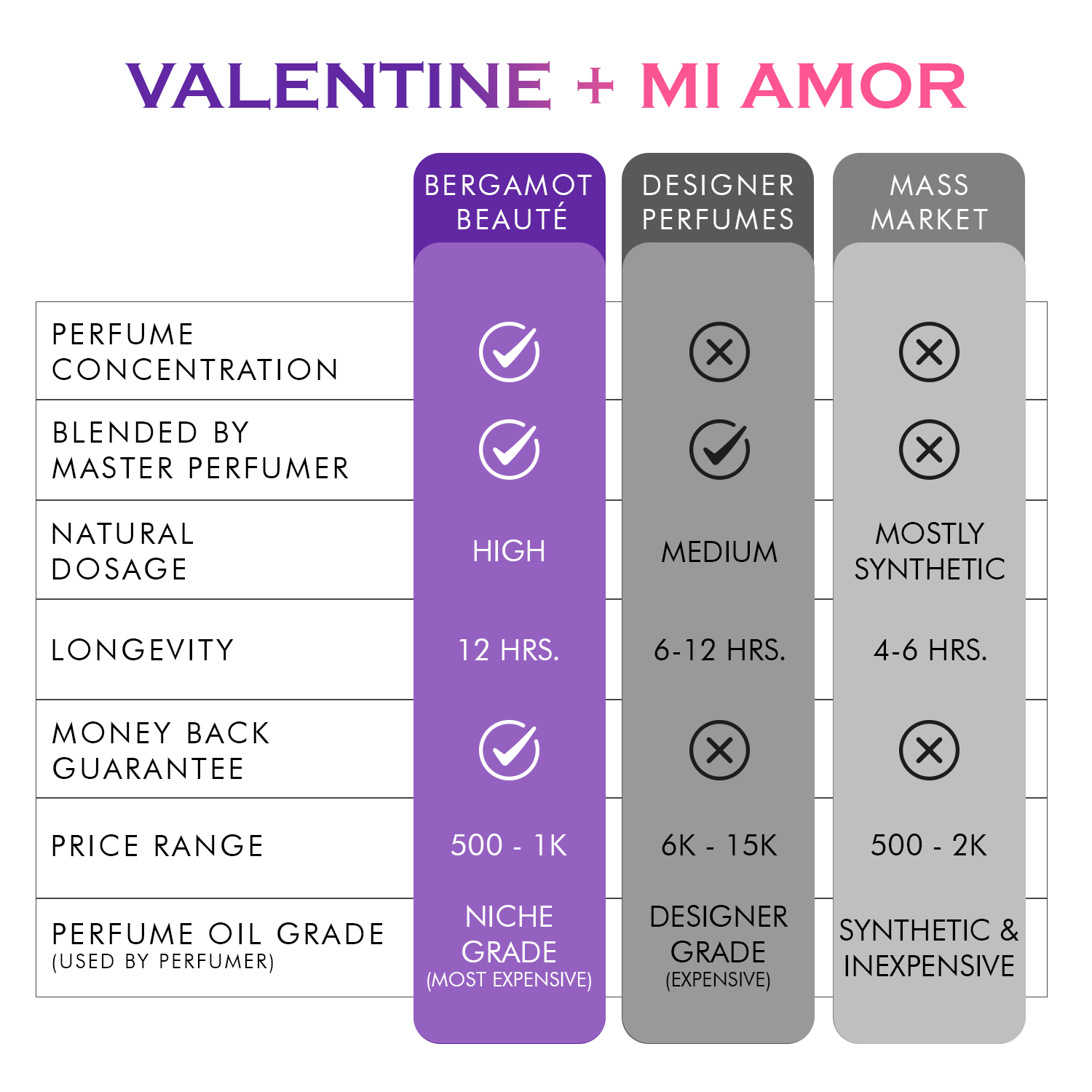 Valentine : Grapefruit, Red Fruits, Jasmine Mi Amor : Angelica, Pear